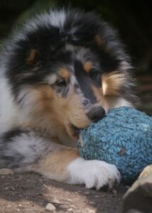 Eli brings a lot to the table with Normal eyes, health tested parents and grandparents, and he has developing into a truly sound, well built, coaty boy. His temperament is best described as an easy going goofball and he loves people.