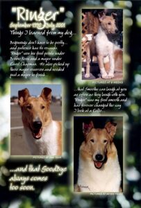 When I started looking for my first show prospect I wanted a blue rough female.  Instead, fate brought me a pure for sable smooth male and my life was never the same.  Ringer taught me to appreciate the Collie without hair and the often unique traits of smooths.  While we never completed his Championship, he did take 13 points and a major along the way.  He also taught me A LOT about patience.  Thanks to Ringer, I will never NOT have a smooth!